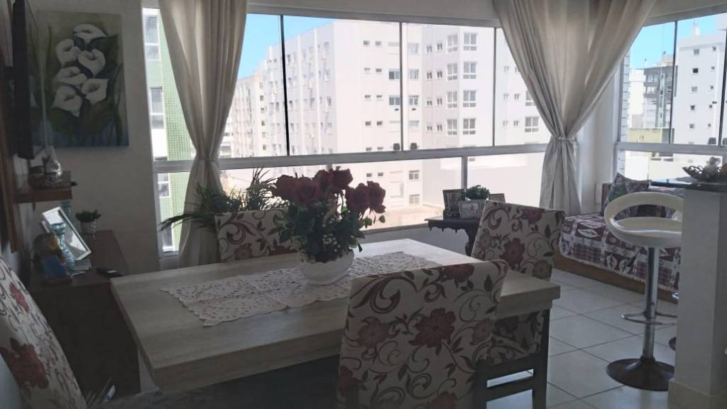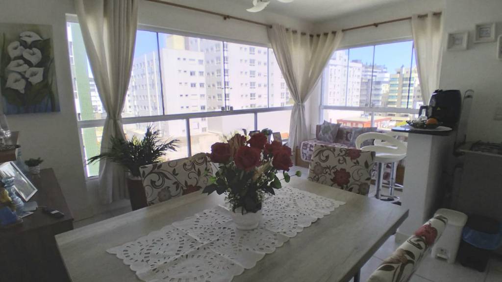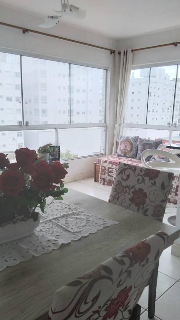 Apartamento 2 dormitórios de frente, perto de mercado, farmácias e de belas praças. Apartamento amplo e bem distribuído, living com dois ambientes estar e jantar, sacada integrada com churrasqueira, com 1 suíte, cozinha, área serviço com máquina de lavar roupas, ventilador de teto, internet, tv canal aberto, 1 box/vaga de garagem. Prédio com portão e porteiro eletrônico, zelador permanente, a poucas quadras da beira mar e centro