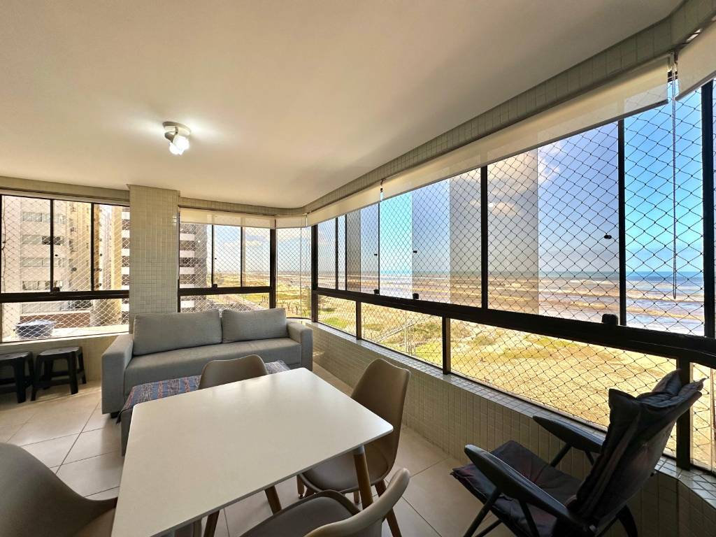 BEIRA MAR VISTA CINEMATOGRÁFICA. Amplo apartamento com 3 dormitórios sendo um suíte, banho social e lavabo, estar e jantar integrados ao living com ampla sacada de frente, vista do 6° andar todo leste norte com churrasqueira, Internet wi-fi e TV a cabo, ar condicionado, máquina de lavar roupas, uma vaga de garagem. Edifício alto padrão com 2 elevadores e portaria 24h, tudo isso na melhor localização da praia. * Mínimo 10 dias.