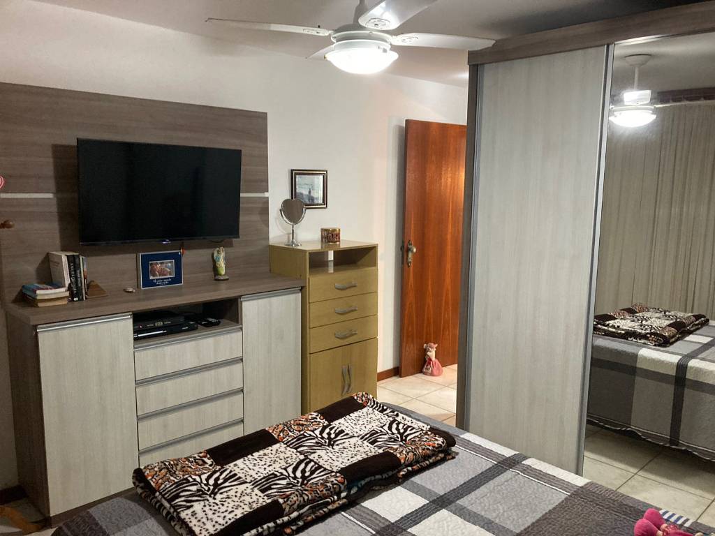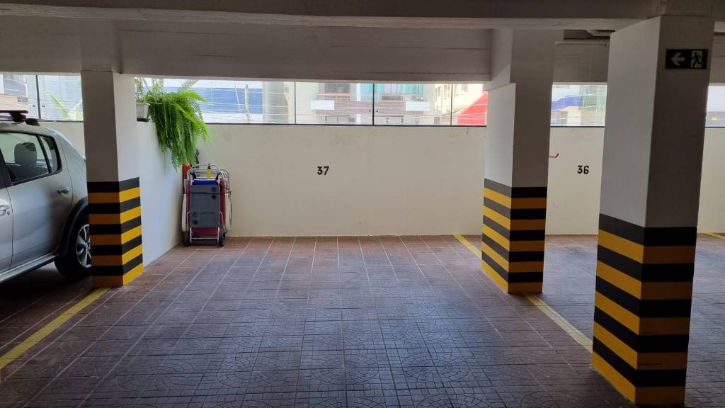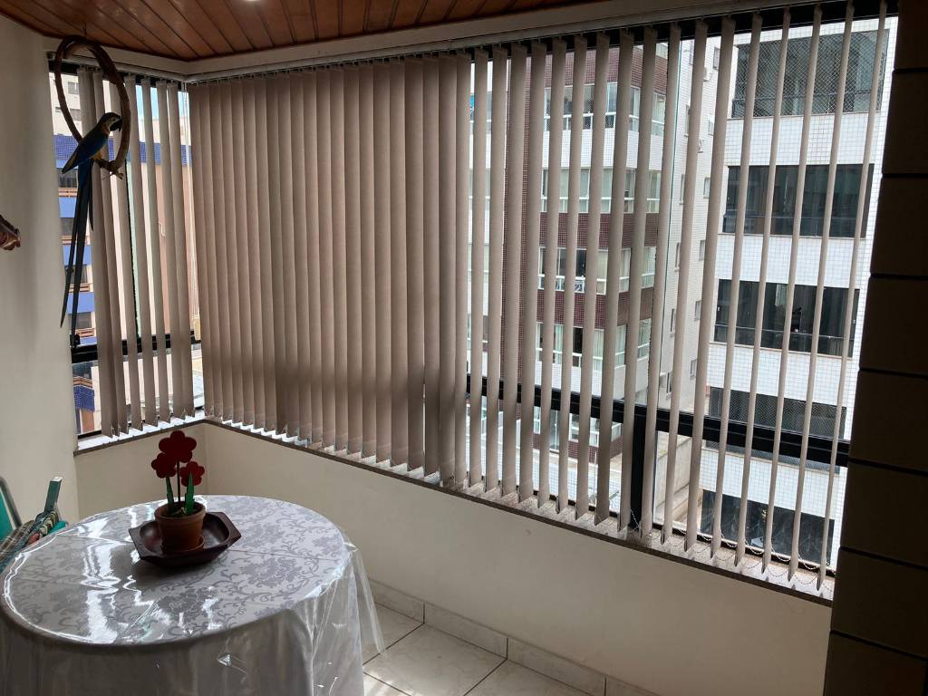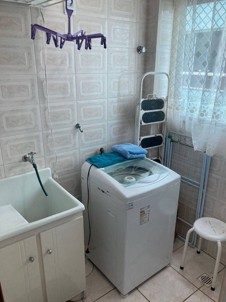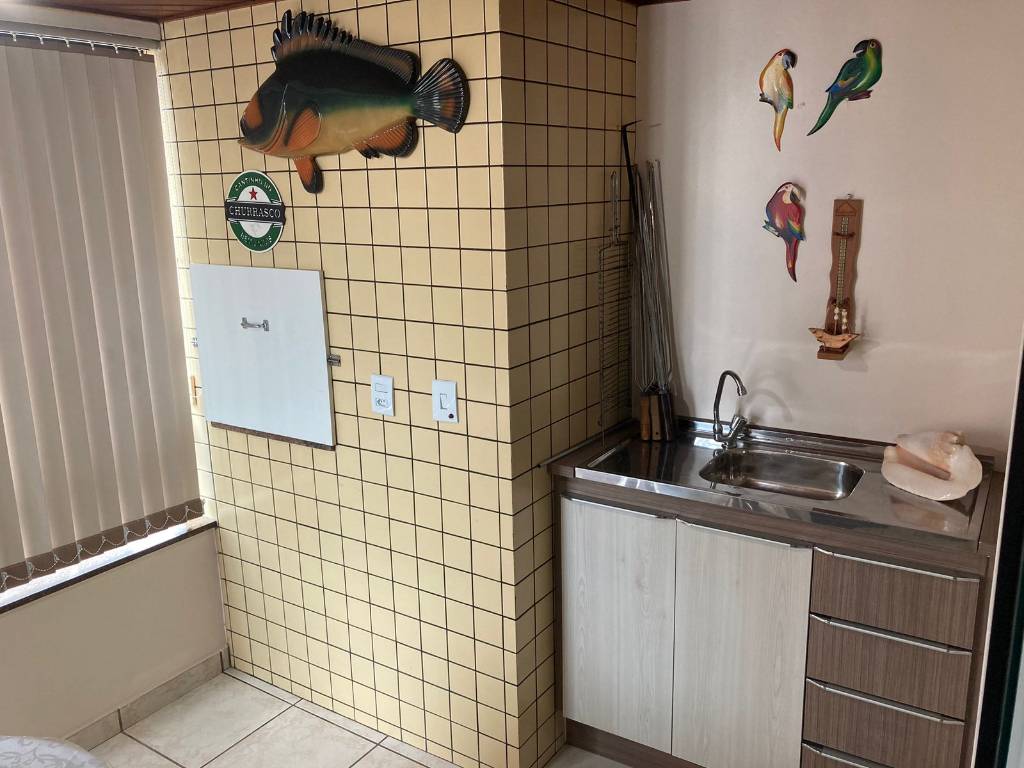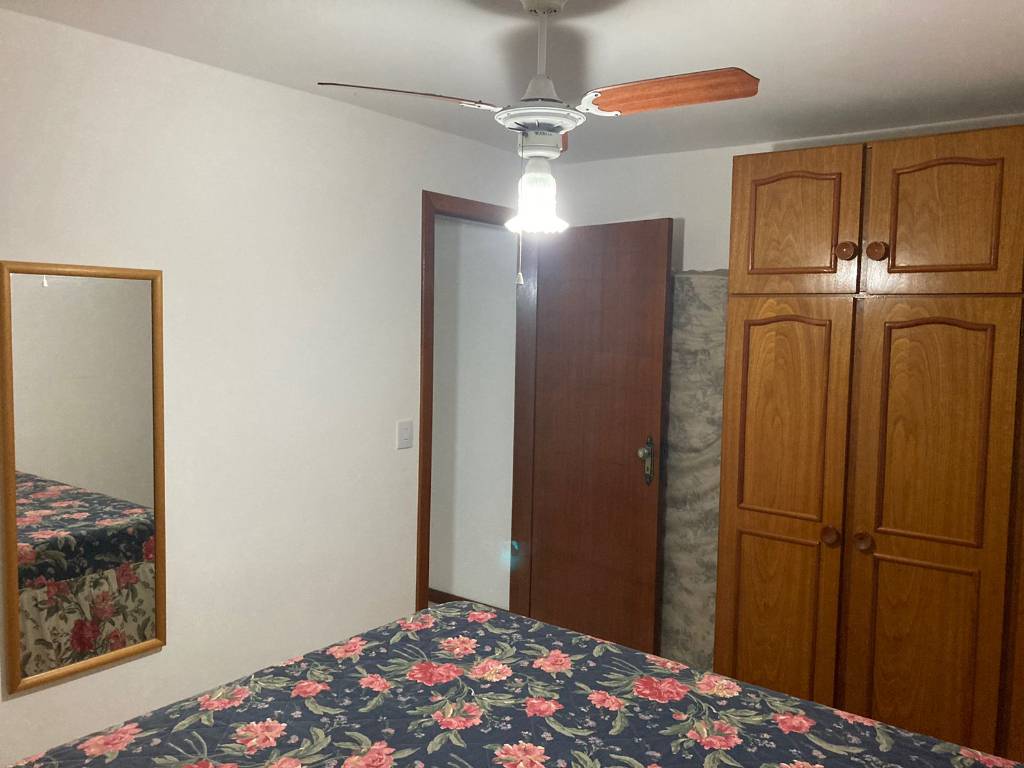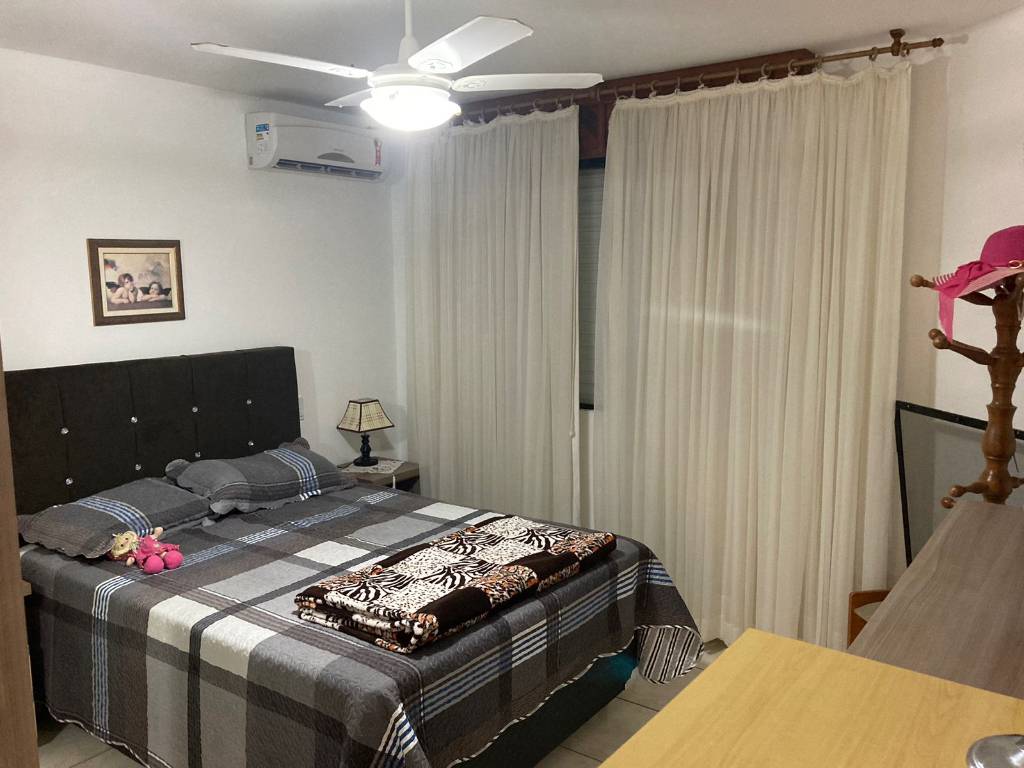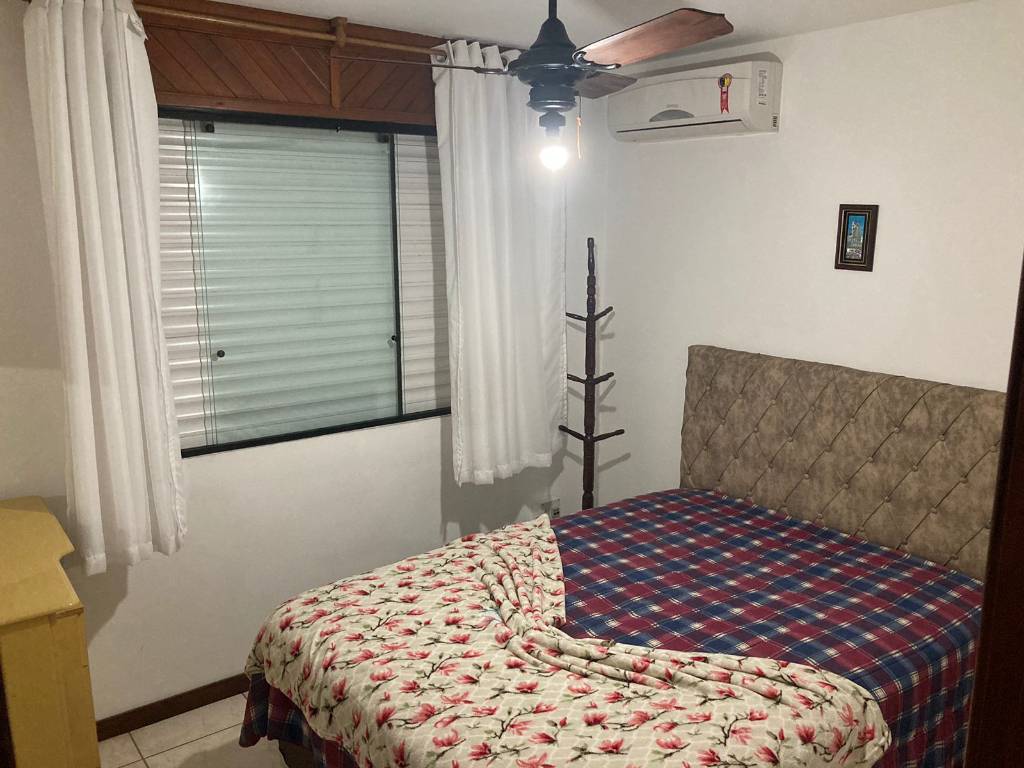 Apartamento 3 dormitórios com 1 suíte, completo, com Wi-Fi, TV a cabo, ar condicionado split e ventilador de teto nos 3 quartos, cozinha separada com micro-ondas, lavanderia com máquina de lavar roupa e freezer, sacada fechada com churrasqueira, e uma vaga de garagem coberta. Acomoda 7 pessoas.