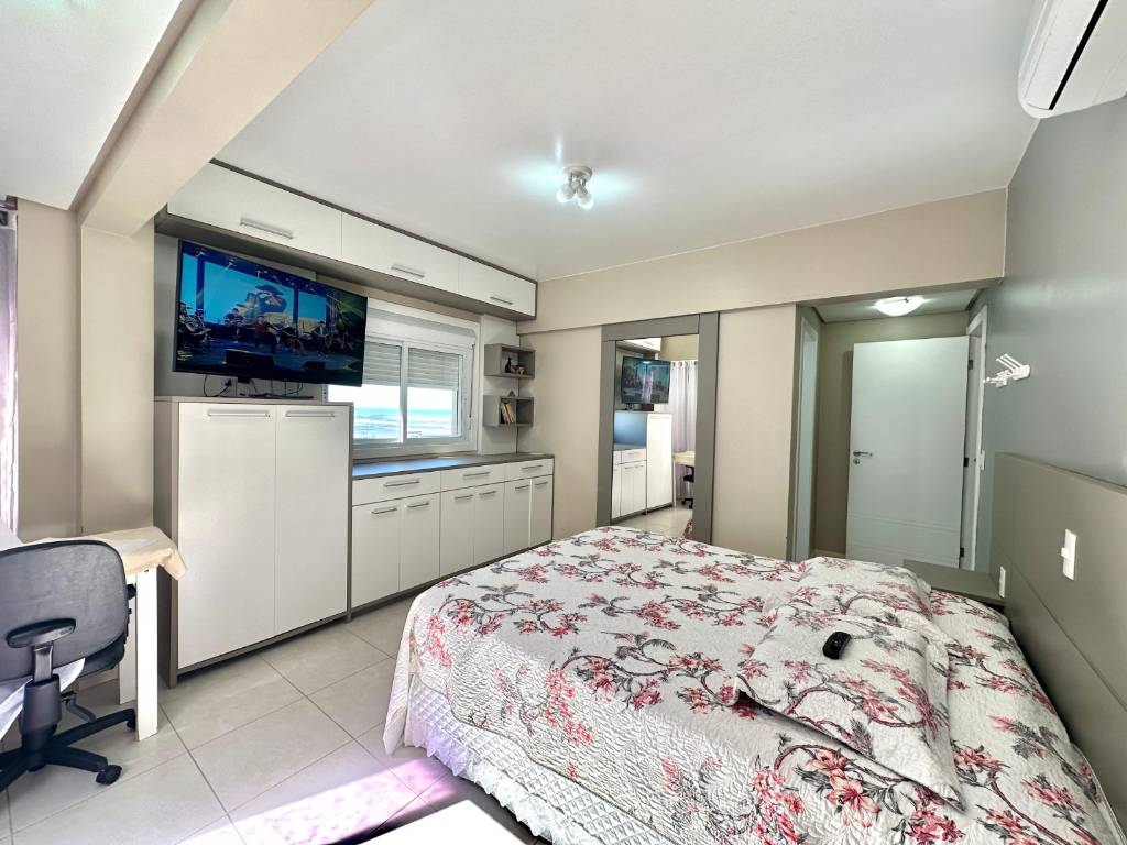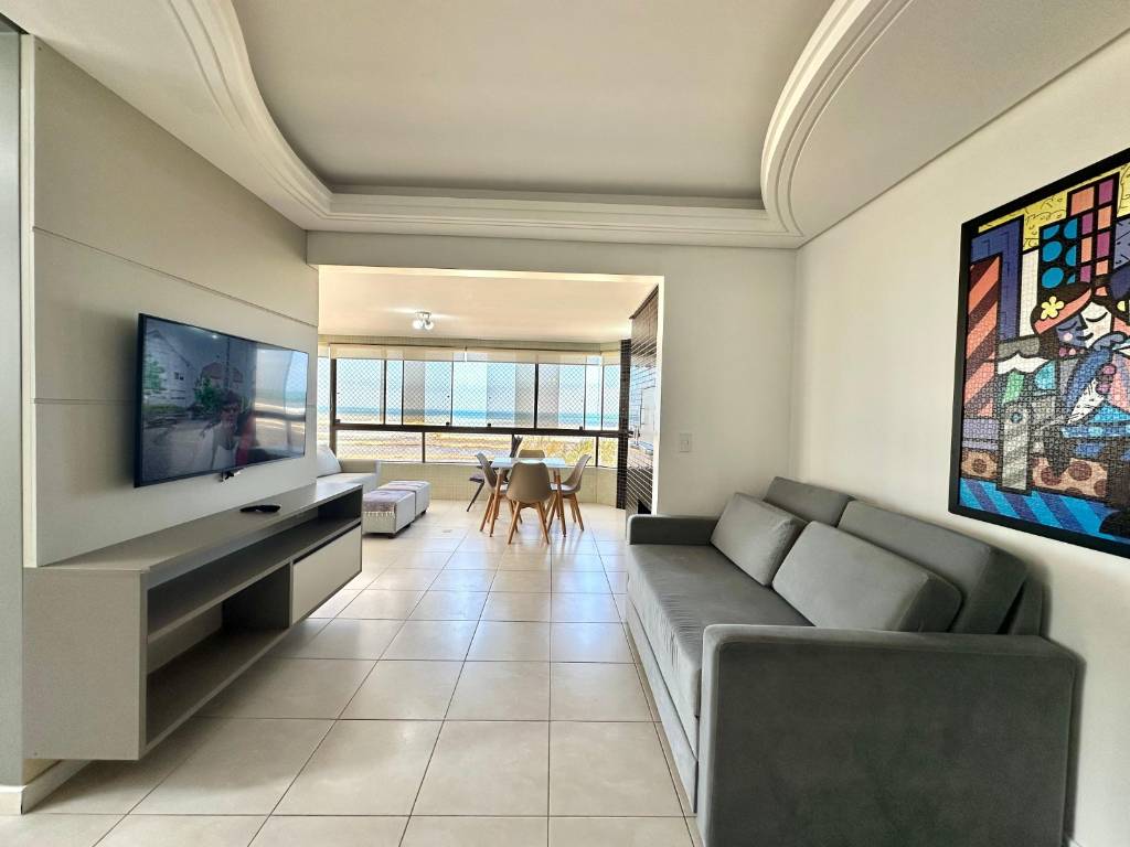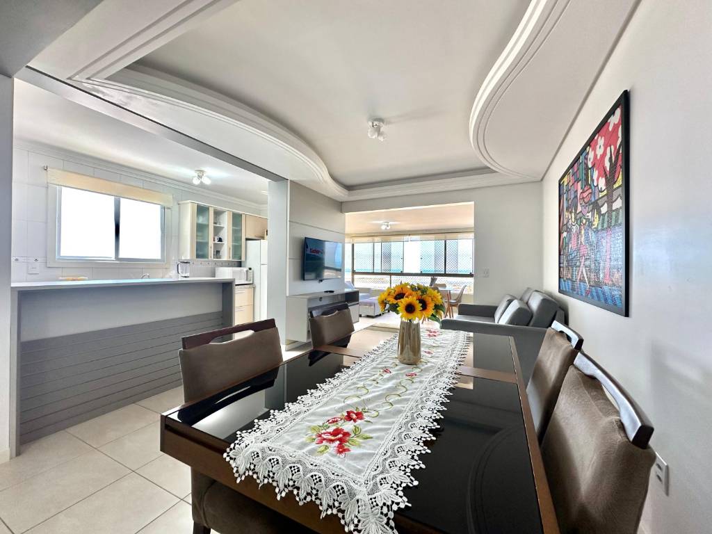 BEIRA MAR VISTA CINEMATOGRÁFICA. Amplo apartamento com 3 dormitórios sendo um suíte, banho social e lavabo, estar e jantar integrados ao living com ampla sacada de frente, vista do 6° andar todo leste norte com churrasqueira, Internet wi-fi e TV a cabo, ar condicionado, máquina de lavar roupas, uma vaga de garagem. Edifício alto padrão com 2 elevadores e portaria 24h, tudo isso na melhor localização da praia. * Mínimo 10 dias.